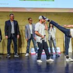 Ein besonderes Highlight des Abends war erneut der Auftritt von Diego: Wie schon im Vorjahr stellte er sich den Fragen des Moderators von „2:tages:bart“ und präsentierte anschließend eine Technik aus dem Kumite. Atemlose Stille erfüllte den Saal, als er mit einer explosiven Beintechnik nur wenige Zentimeter vor dem Gesicht des Moderators stoppte – eine beeindruckende Demonstration von Präzision, Schnelligkeit und absoluter Kontrolle. Die anschließende Erleichterung des Moderators sorgte für sichtbare Begeisterung im Publikum.